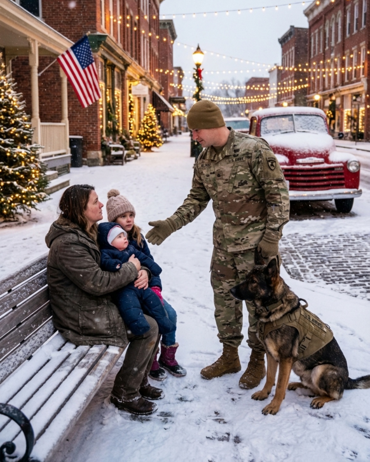 Caleb had been driving aimlessly, the holiday “cheer” of the town feeling like a foreign language he had forgotten how to speak. He saw the silhouette on the bench. He saw the way the woman’s shoulders were hunched in a defensive perimeter around her children.